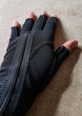 1. Mit dieser Art Handschuh wird die Muskelspannung mit Hilfe von Druck und Zug positiv beeinflusst.